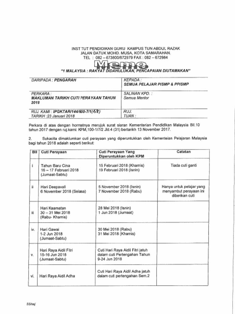 Cuti ini tidak perlu diganti. Kementerian pendidikan malaysia (kpm) melalui portal rasminya telah mengeluarkan takwim / kalender persekolahan 2018 sebagai rujukan dan panduan pihak yang terlibat terutama guru dan juga murid. Kementerian pendidikan (kpm), umum melaksanakan pengajaran dan pembelajaran di rumah (pdpr) selama dua minggu selepas cuti perayaan.sebaliknya pengajaran. Boleh klik dibawah, link terus laman sesawang kpm. Kpm telah mengeluarkan takwim cuti sempena perayaan 2018 sebagai panduan untuk memudahkan anda semua merancang cuti dan memudahkan pihak sekolah terutamanya dalam merancang takwim persekolahan.
